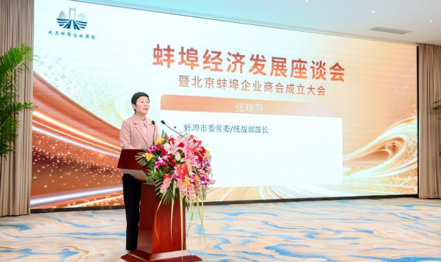 張曉靜在講話中首先對商會的成立表示祝賀,對關(guān)心支持蚌埠發(fā)展的各界人士表示感謝。她指出,近年來,蚌埠緊盯“加快蚌埠振興”發(fā)展目標,著力打造智能傳感、商業(yè)航天、生命健康等產(chǎn)業(yè)集群,積極培育先進材料、腦機接口、低空經(jīng)濟等未來產(chǎn)業(yè),2025年,全市多項核心指標重返全省前列,開放包容、充滿活力的“淮河明珠、智造之城”正在加速崛起。她希望,商會成立后能夠擔當作為、不辱使命,積極做鄉(xiāng)情聯(lián)結(jié)的“暖心家園”,加強守望相助、抱團發(fā)展,凝聚蚌商合力;做京蚌協(xié)作的“紐帶橋梁”,主動對接北京優(yōu)勢資源,賦能雙向共贏;做家鄉(xiāng)形象的“宣傳大使”,宣傳蚌埠優(yōu)勢,講好蚌埠故事。她表示,蚌埠市委、市政府將永遠以開放的姿態(tài)歡迎大家到蚌埠考察指導(dǎo)、投資興業(yè)。